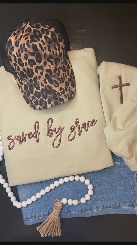 Saved by Grace 3D Puff Embroidered Sweatshirt - ANY COLOR