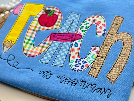 Personalized "Teach" Bean Stitch Appliqué Shirt – Custom Gift for Teachers