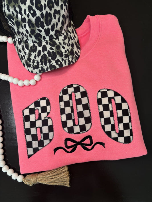 Neon Pink “BOO” Halloween Sweatshirt – Custom Applique