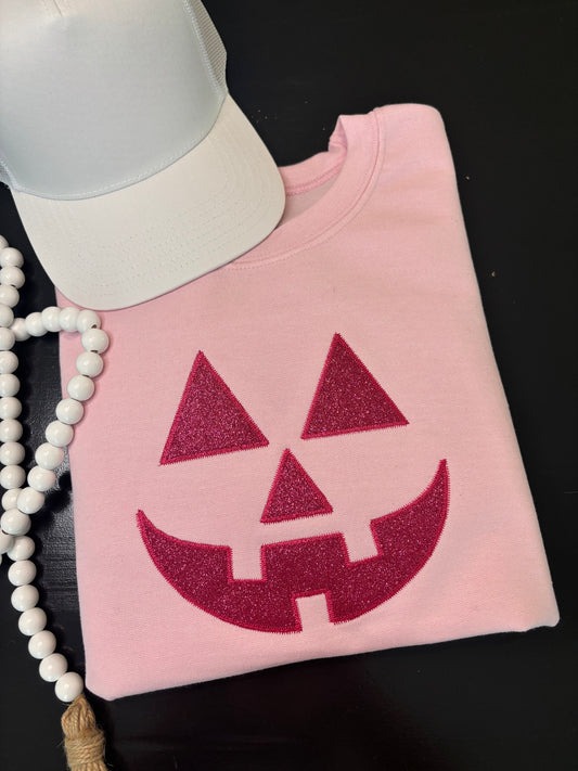 Pink Jack O'Lantern Sweatshirt - Glitter Applique