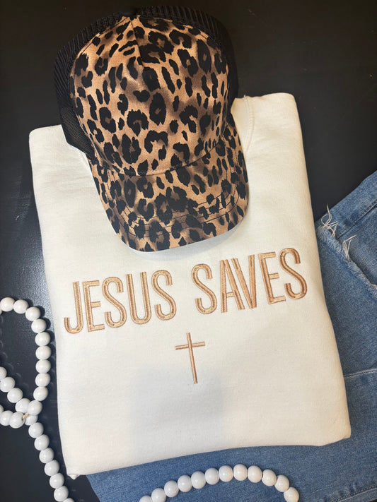 Jesus Saves Embroidered Sweatshirt - ANY COLOR