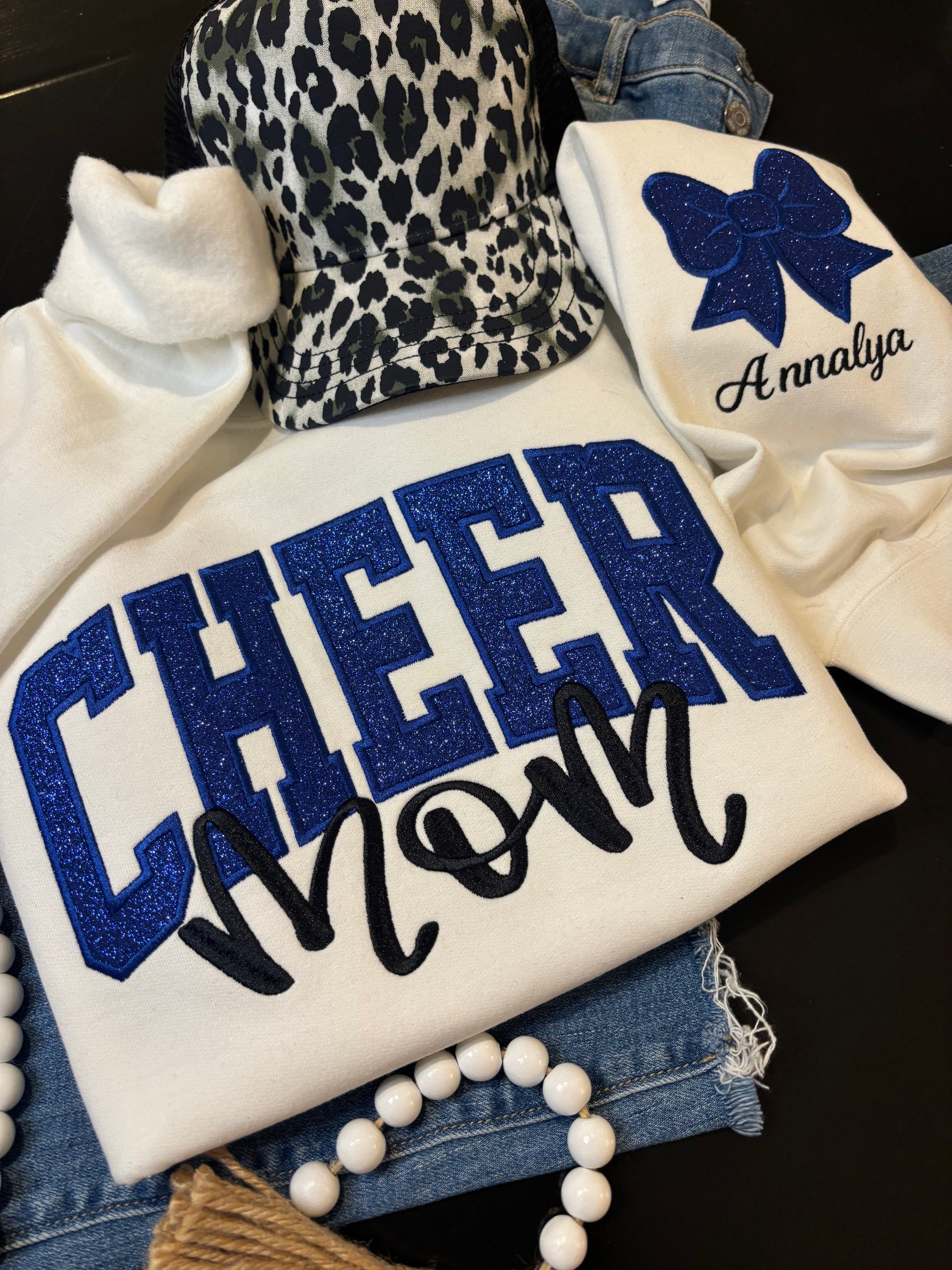 Custom Glitter Appliqué Cheer Mom Sweatshirt - ANY COLOR