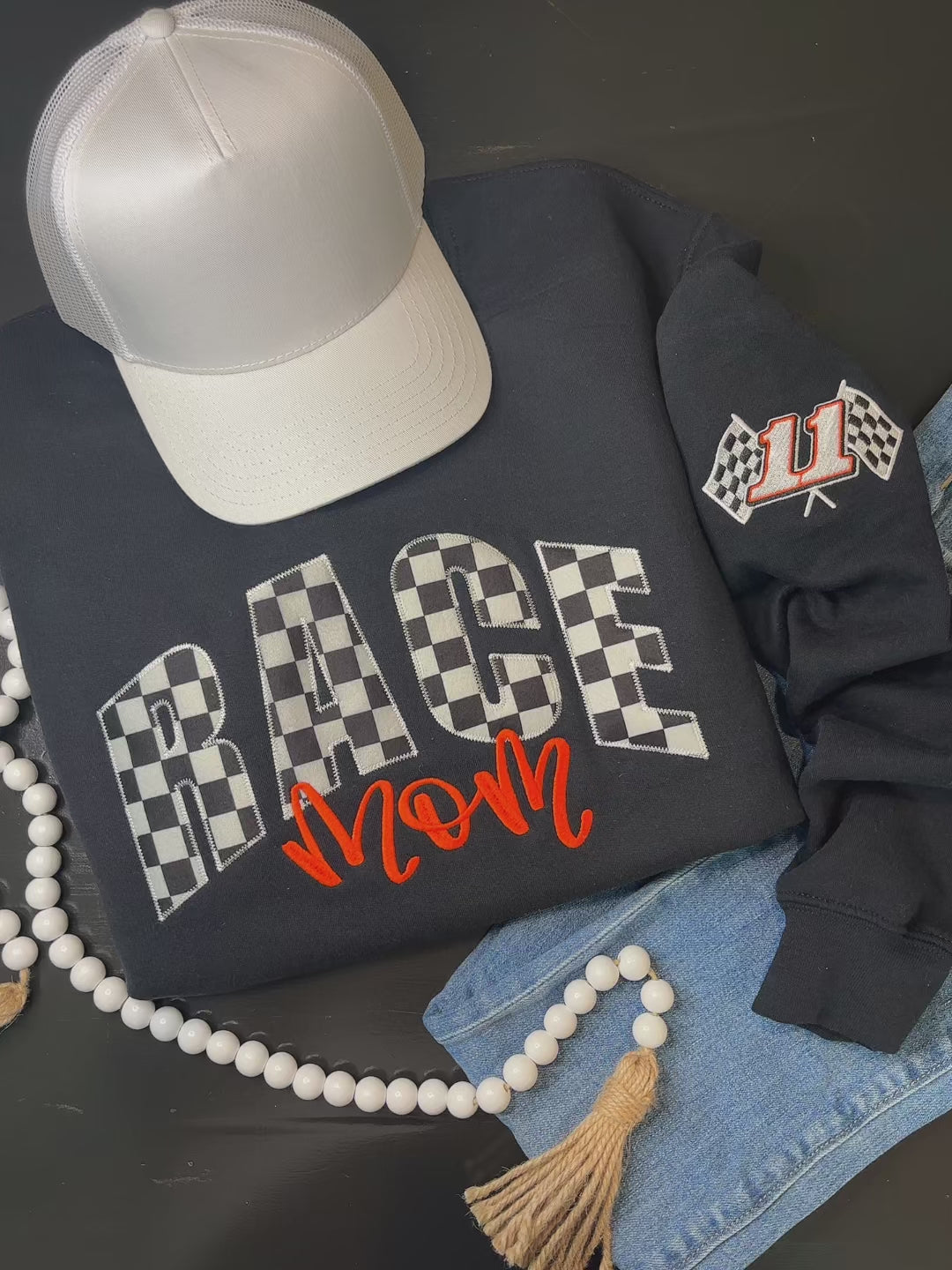 Custom Race Mom Applique Sweatshirt - ANY COLOR