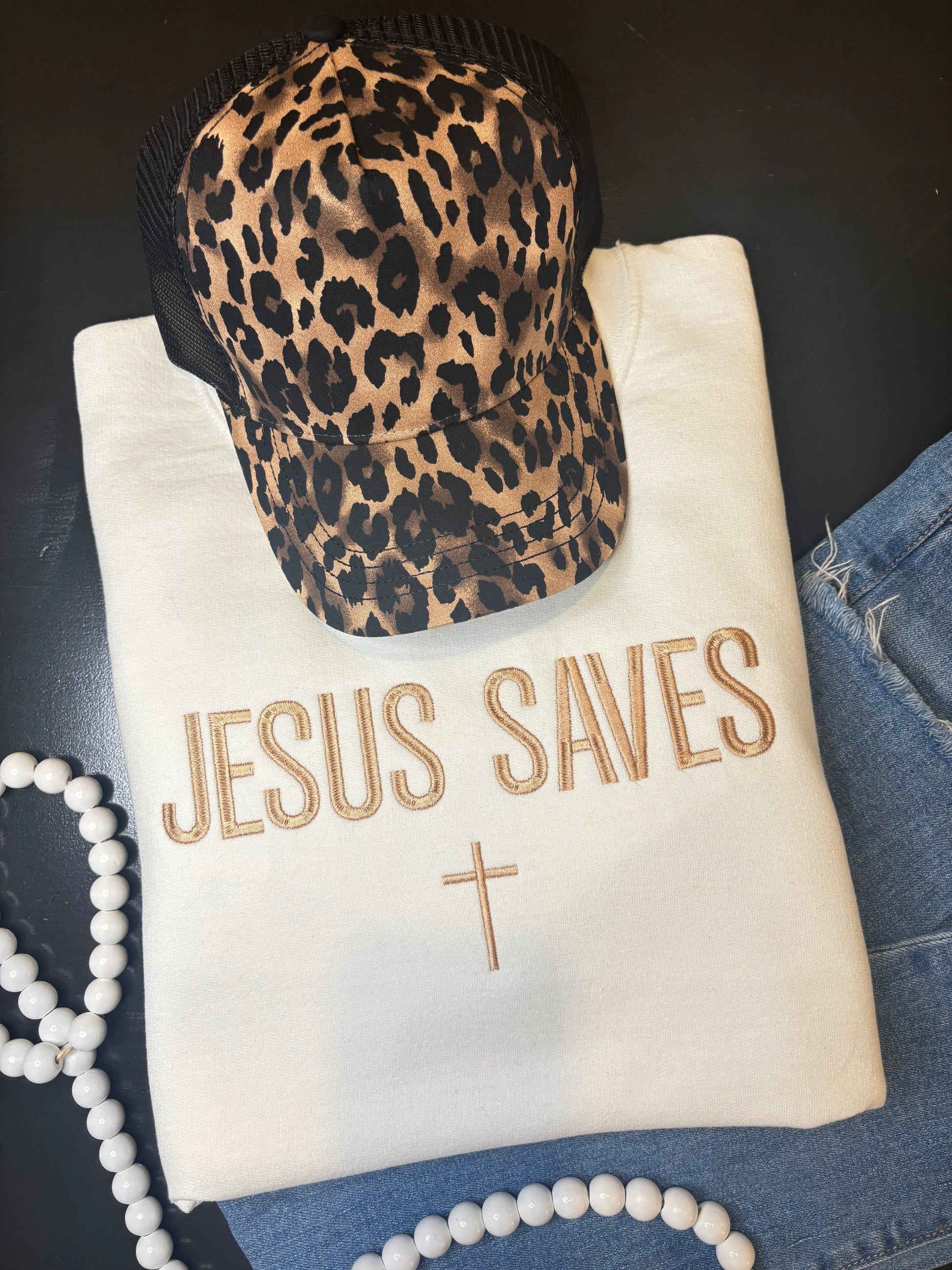 Show your faith with this cozy Jesus Saves embroidered sweatshirt. Each one is custom made to order, giving you the freedom to choose your favorite sweatshirt color and thread color for the design. Whether you love neutrals, bold tons, or pastels, this piece is made just for you!