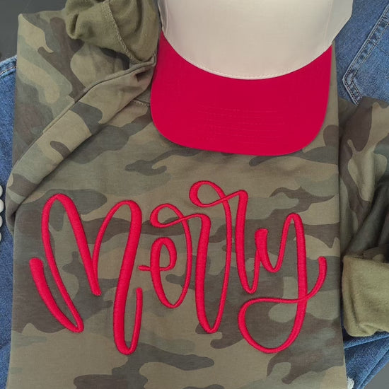 Camo “Merry” Sweatshirt – Red 3D Puff Embroidery (EXTREMELY Limited!)