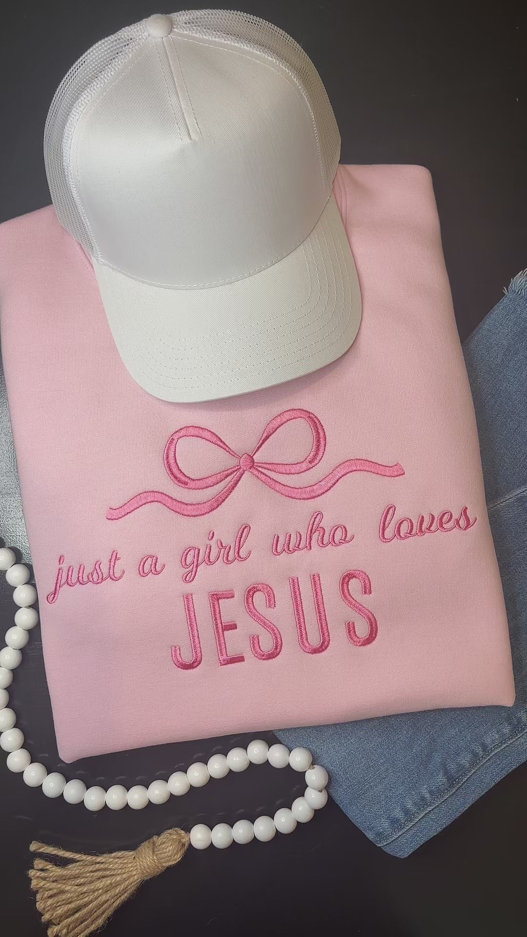 Show your faith with this cozy Just a Girl Who Loves Jesus sweatshirt. Each one is custom made to order, giving you the freedom to choose your favorite sweatshirt color and thread color for the design. Whether you love neutrals, bold tons, or pastels, this piece is made just for you!